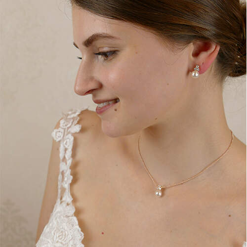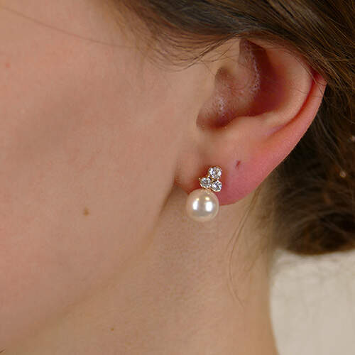 Ohrstecker mit Perle und Swarovskikristallen in Roségold